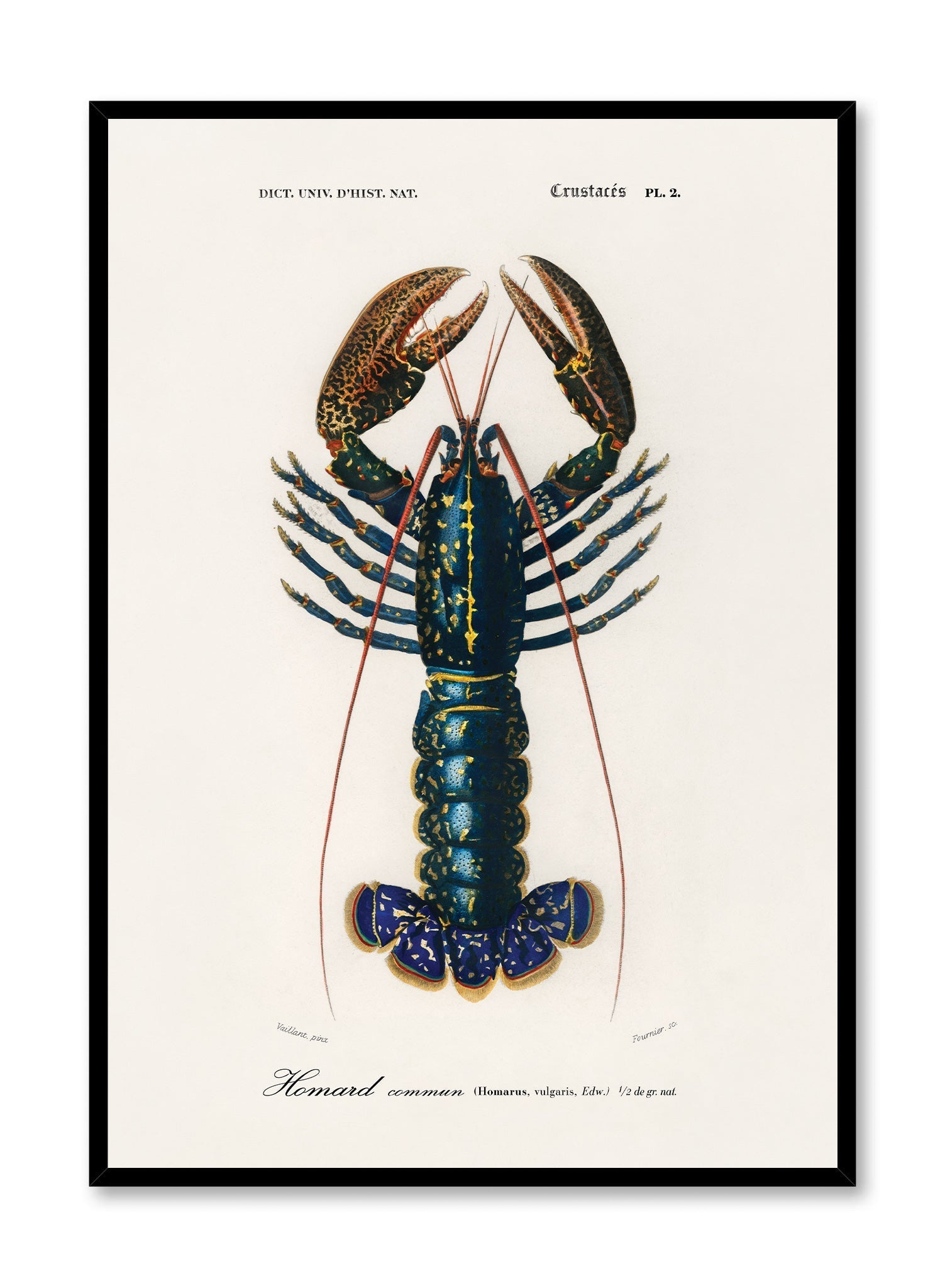Some royals have blue blood. This king has blue scales! Give your kitchen or cottage walls an edge with this vintage illustration of a blue lobster.